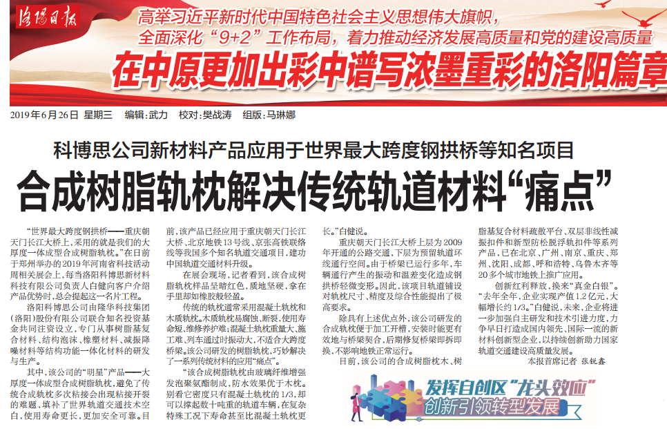 官宣:合成樹(shù)脂軌枕解決傳統(tǒng)軌道材料“痛點(diǎn)”-----洛陽(yáng)科博思新材料科技有限公司接受《洛陽(yáng)日?qǐng)?bào)》專(zhuān)訪