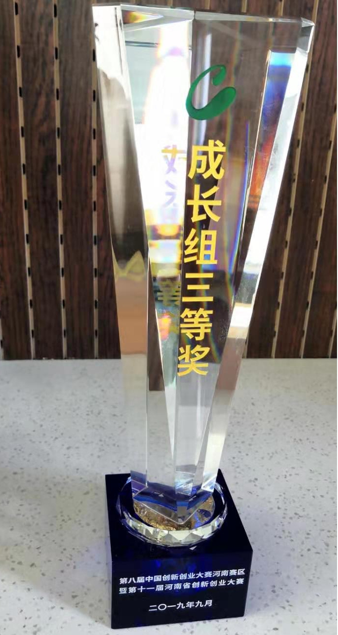 榮獲“第八屆中國(guó)創(chuàng)新創(chuàng)業(yè)大賽河南賽區(qū)三等獎(jiǎng)”