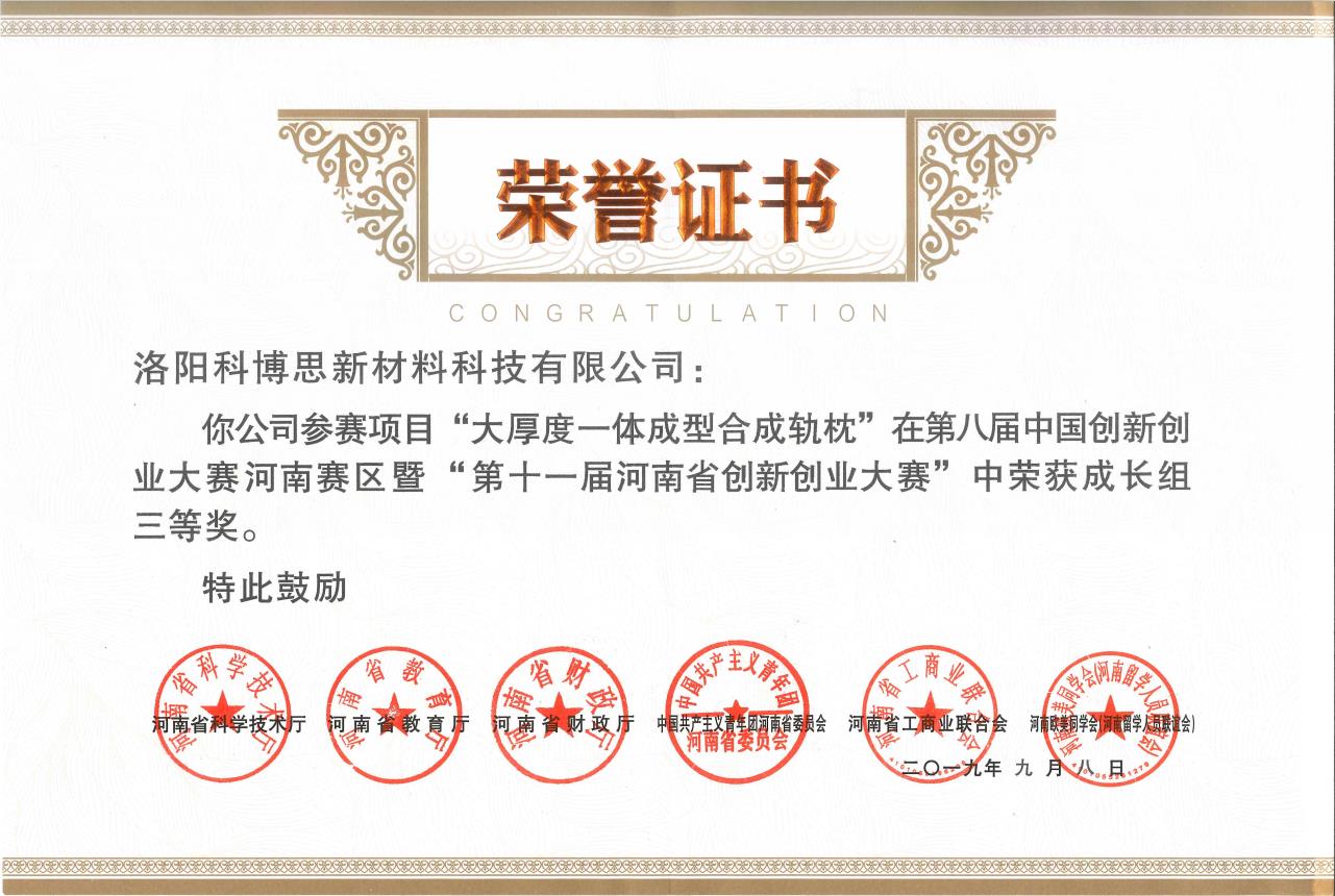 科博思新材榮獲‘第八屆中國(guó)創(chuàng)新創(chuàng)業(yè)大賽河南賽區(qū)’三等獎(jiǎng)
